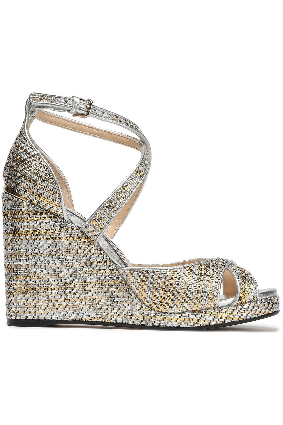 Silver Metallic woven wedge sandals jimmy choo wedges sale