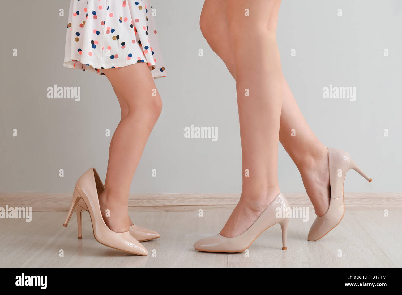 cute little daughter wearing high cute little heels