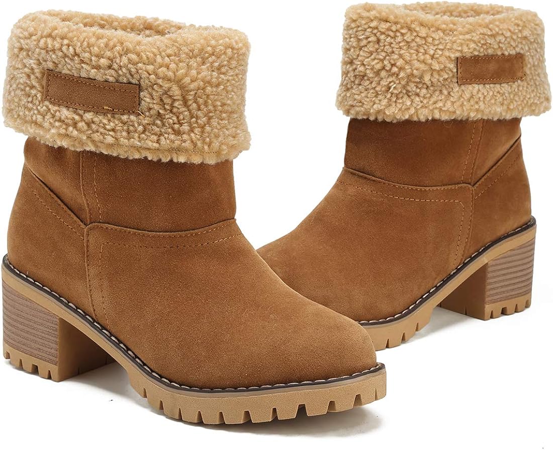 Short Boots Suede Chunky Mid Heel Round dotacoko women cute warm short boots suede chunky mid heel round toe winter snow ankle booties