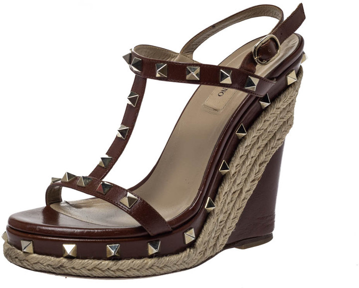 Torchon Rockstud leather wedge sandals valentino style wedges